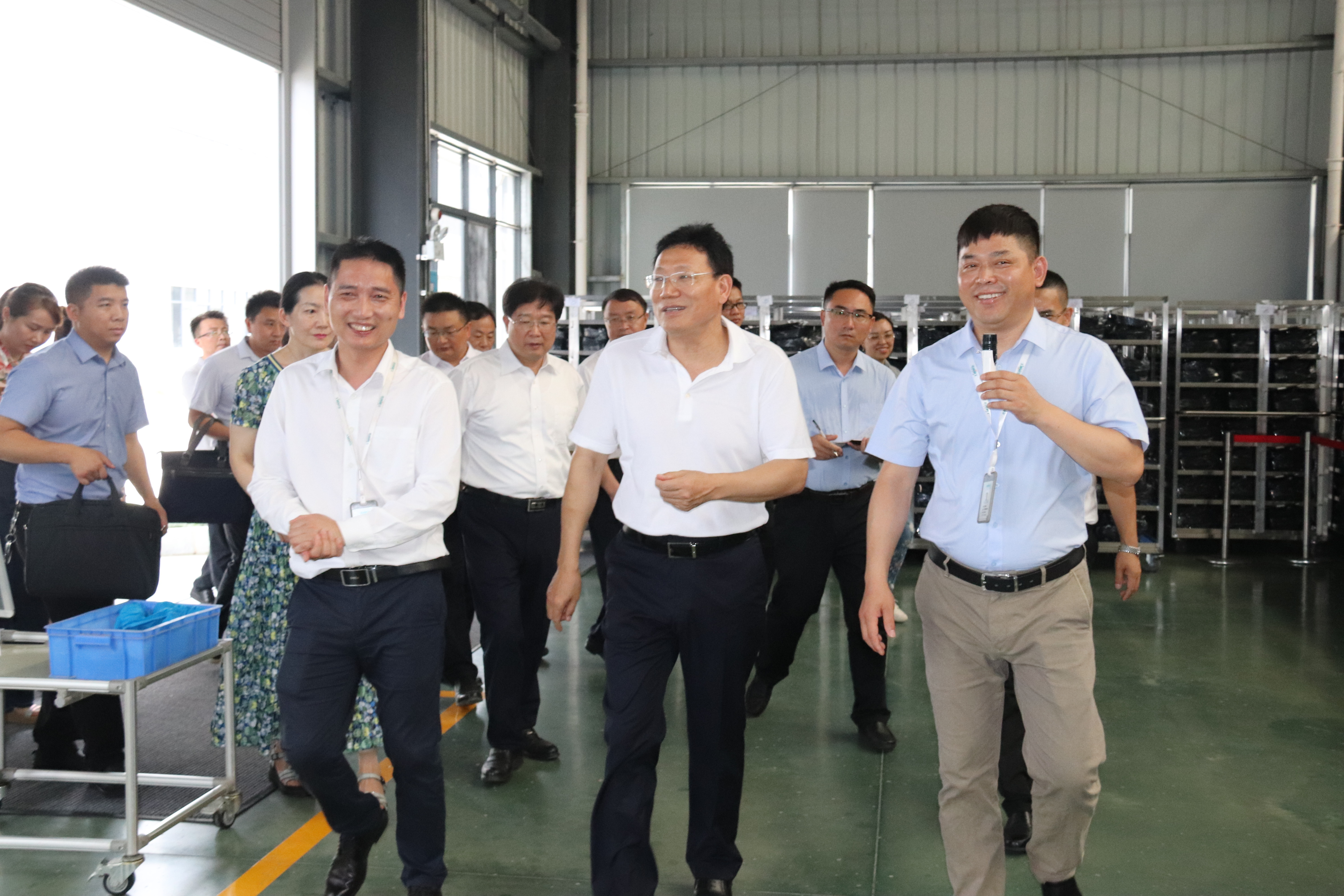6月26日上午中共邵阳市委委员、常委、副书记华学健在邵阳经开区党工委副书记、管委会主任吴名蒙,党工委副书记杨平的陪同下来我公司进行了参观调研,公司副总经理彭伟辉、智能制造中心副总监章新接待了参观团一行。