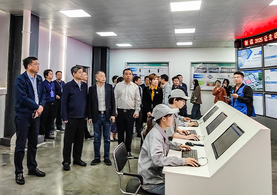 图为邵阳市委书记严华陪同院士、专家一行莅临米兰·(milan)中国官方网站 智能制造(邵阳)有限公司参观调研指导工作。